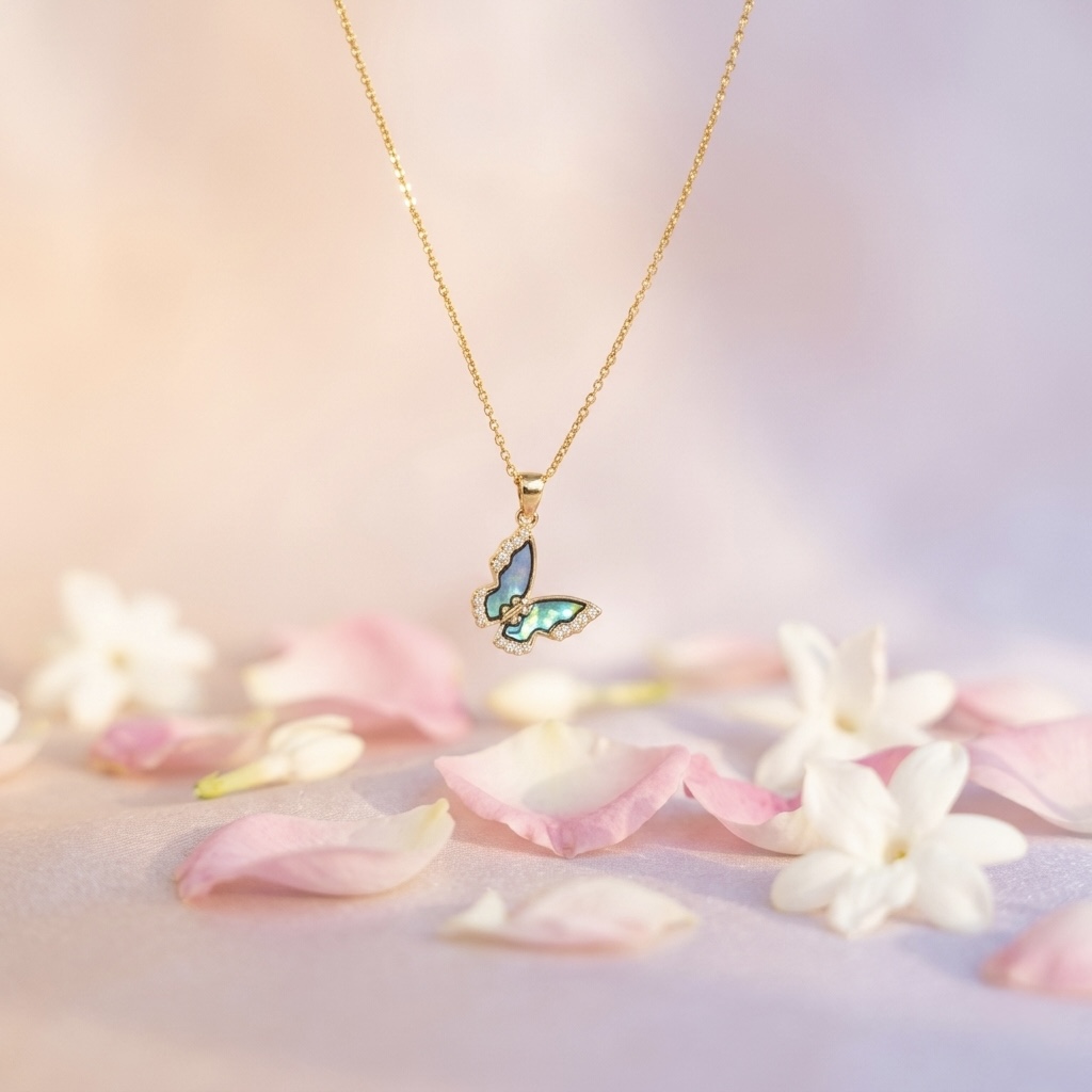 This delicate butterfly necklace is designed to add a soft, feminine charm to your everyday look.