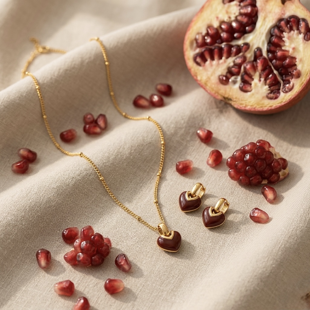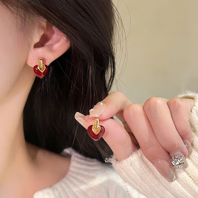 This elegant set features a deep red heart design paired with a sleek gold finish, creating a look that feels both romantic and effortlessly stylish.